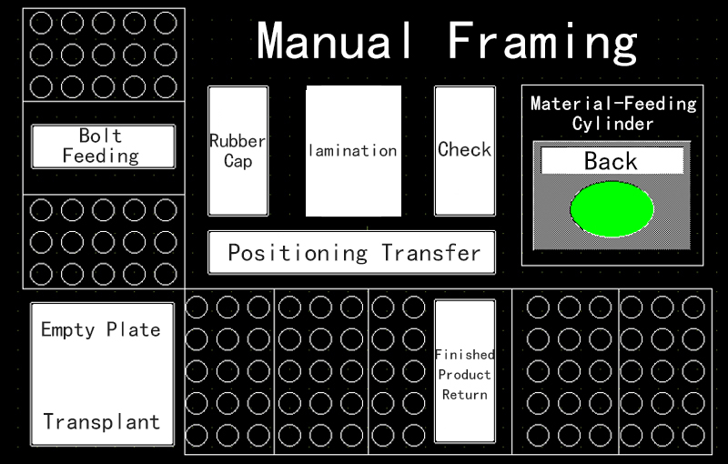 The assembly sequence is: bolt manual swing (conveyor) - bolt feeding - material tray conveyor - rubber cap feeding - rubber cap separation positioning - rubber cap rotating feeding - rubber cap pressing - detection - good product return (conveyor).